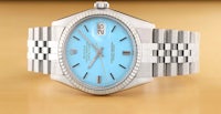 ROLEX MENS DATEJUST AQUA BLUE DIAL 18K WHITE GOLD STEEL WATCH w/ JUBILEE BAND